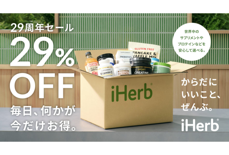 また、8月29日 10時〜10月2日 2時までの期間限定で、iHerbの商品が29%オフになる年間最大割引セールも開催予定。